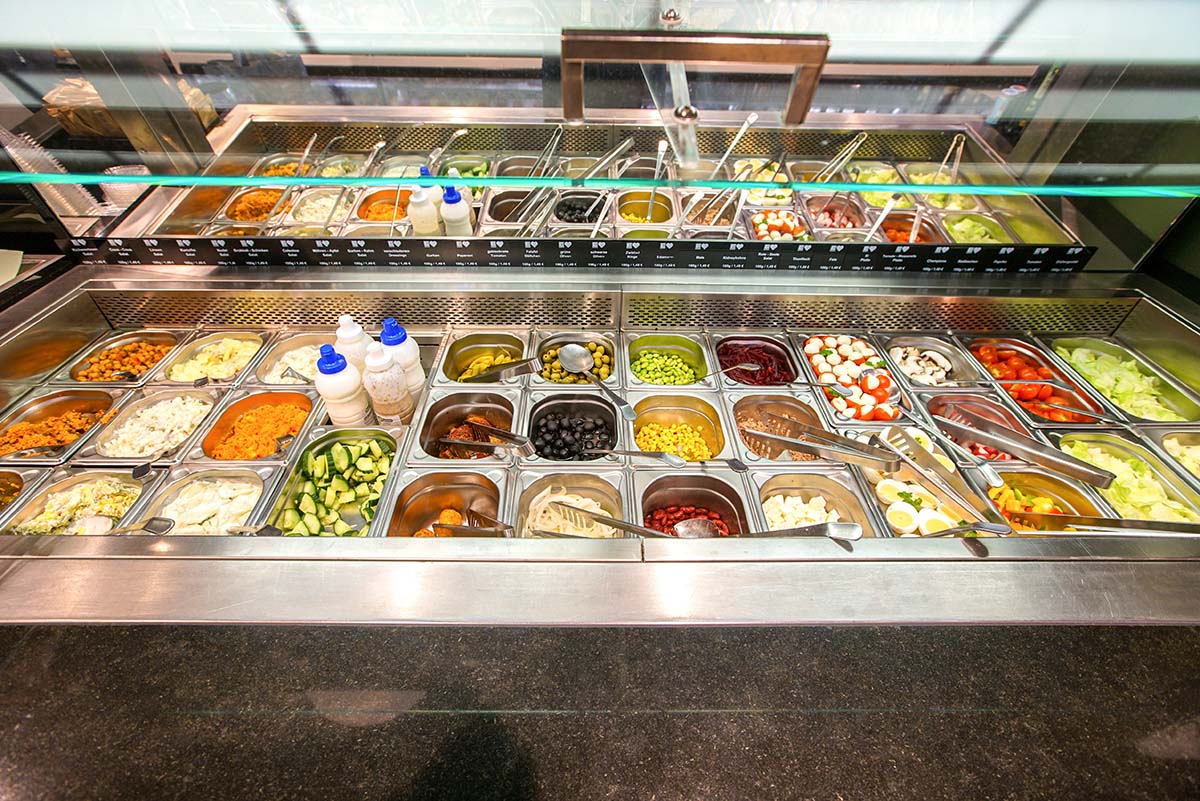 • SalatbarNutzen Sie die große Frischeauswahl an unserer Salatbar und stellen Sie sich eine köstliche Auswahl zusammen!